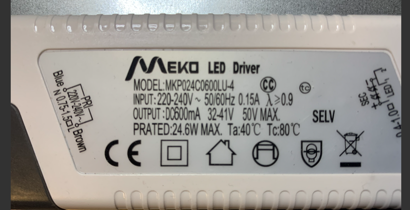 da ich keinen Dali Treiber 600mA (für max 48V DC) habe ich einen 500mA Treiber verwendet
