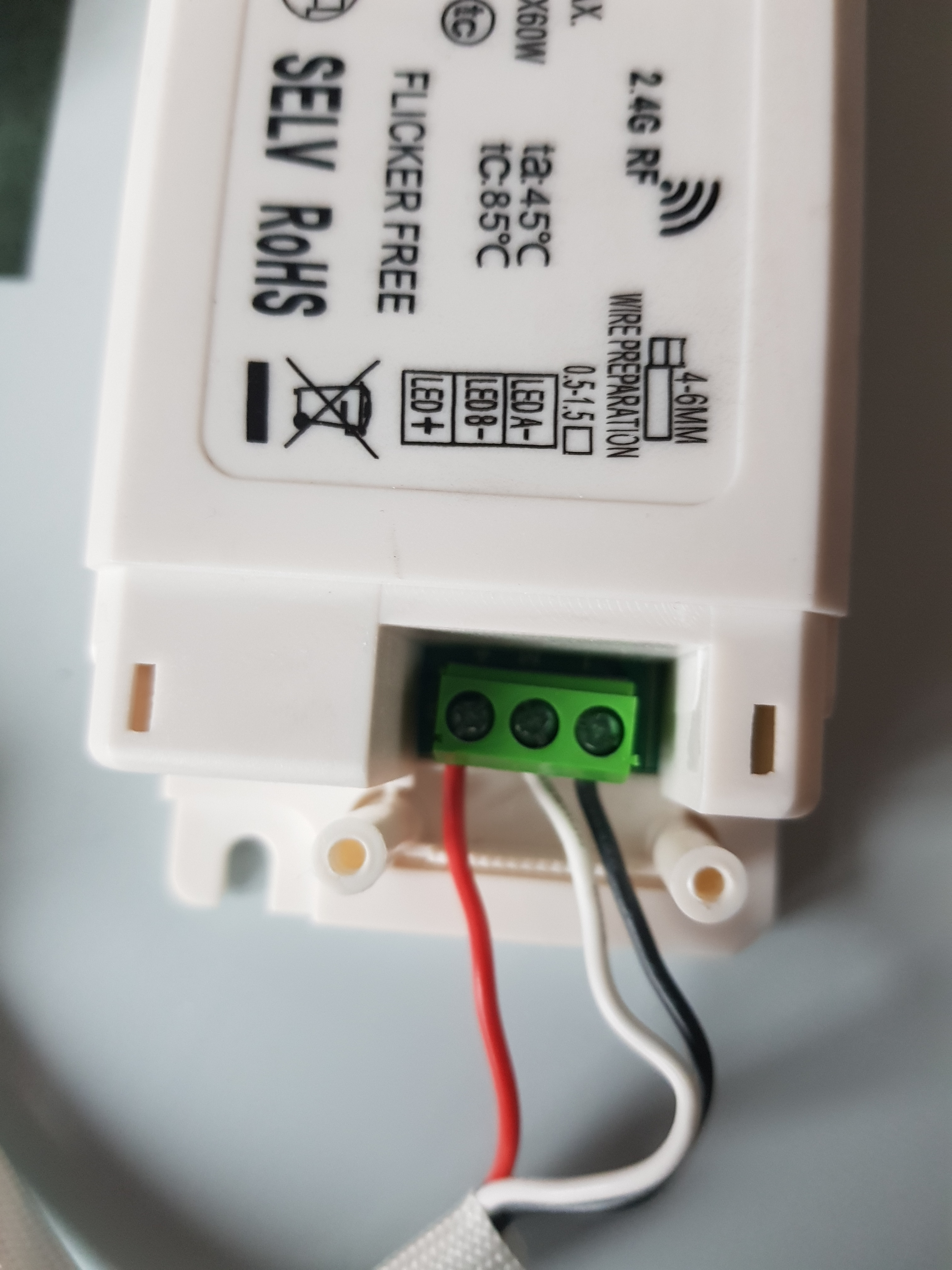 Fotos vom herstellerseitig eingebauten Netzteil und Funkdimmer